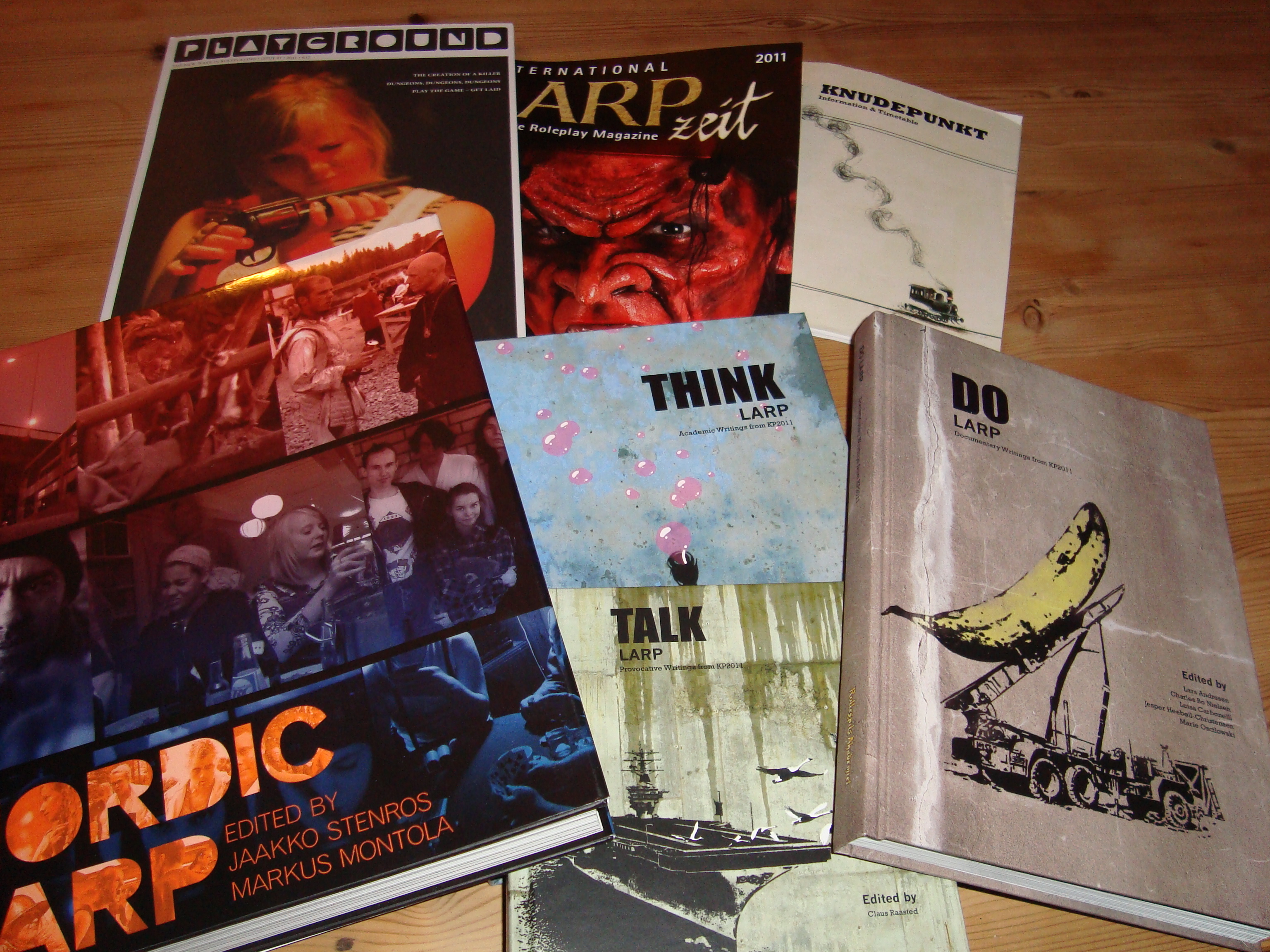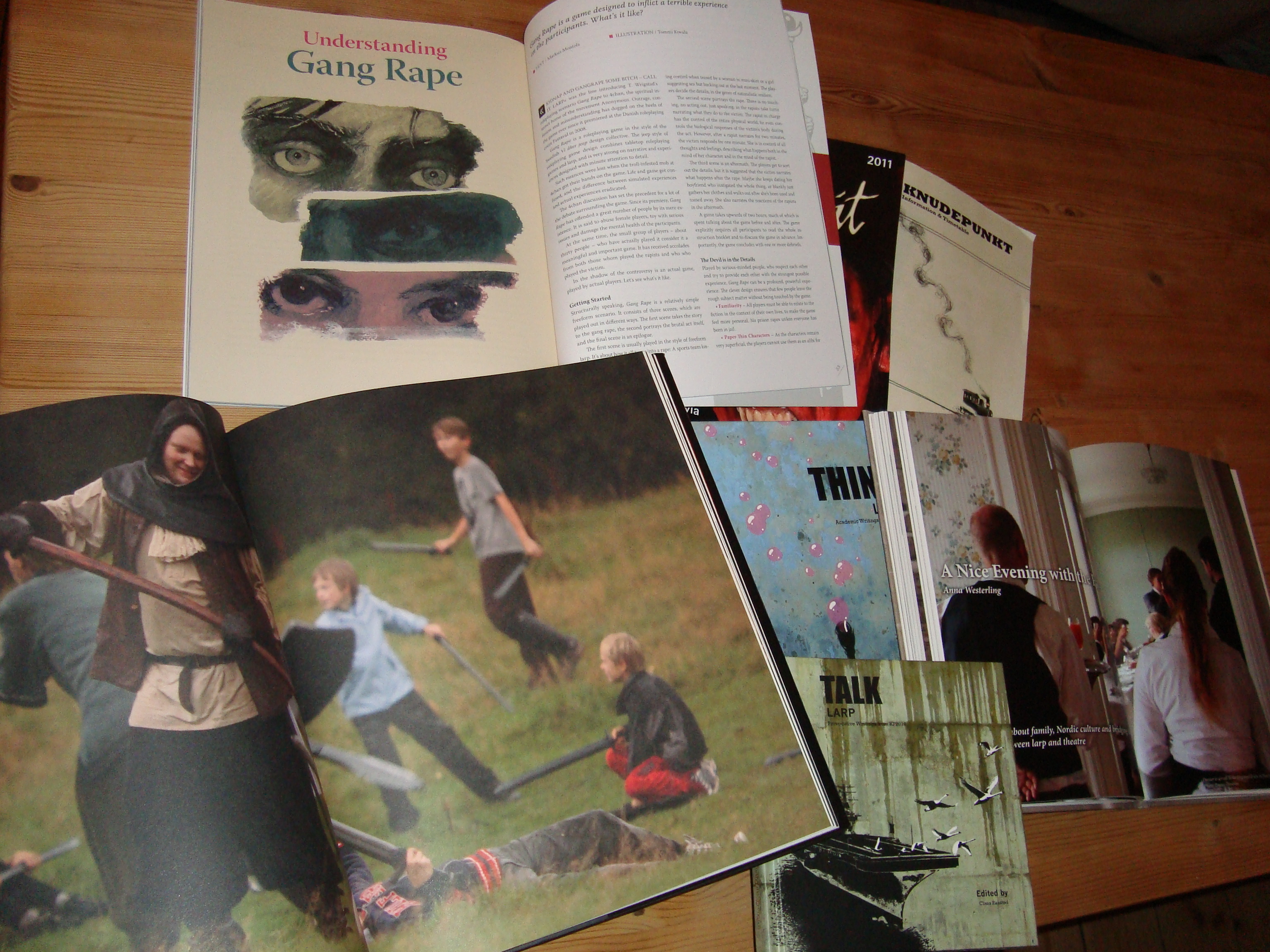 I ended up with a lot a of material from Knudepunkt: Playground Magazine, Larp Zeit – International Edition, Nordic Larp, and this years three Knudepunkt-books.