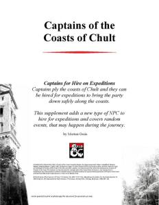 I really like the concept of guides in Tomb of Annihilation. It may seem obvious, and yet it is so rarely done this well in wilderness adventures. Expanding upon the idea, thus allowing us to increase the scope of expeditions into the wilderness, I added Experts for Hire as mentioned in my previous post, and now I have Captains for hire. An assortment of captains, each with their own little kernel of a potential adventure, and a series of random events ranging from bad weather to weird and inexplicable phenomena. Captains of the Coasts of Chult can now be found at DM’s Guild. My previous Expedition Crew supplement was Experts of Chult, and I am considering adding a third one.
